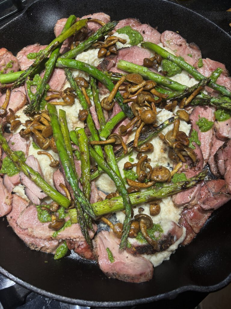 Dit gerecht combineert perfect gegaarde eendenborst met romige knolselderij, frisse pesto en aardse paddenstoelen. Ideaal als verfijnd hoofdgerecht voor de winter, rechtstreeks van de kamado.